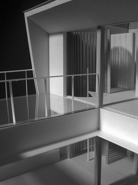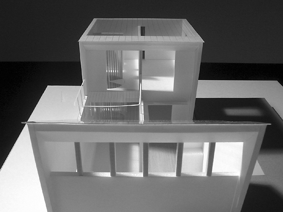 この模型は屋根が透明なので、中の様子が分かります。南棟ハイサイドライトよりの光が奥まで達しているのが分かります。