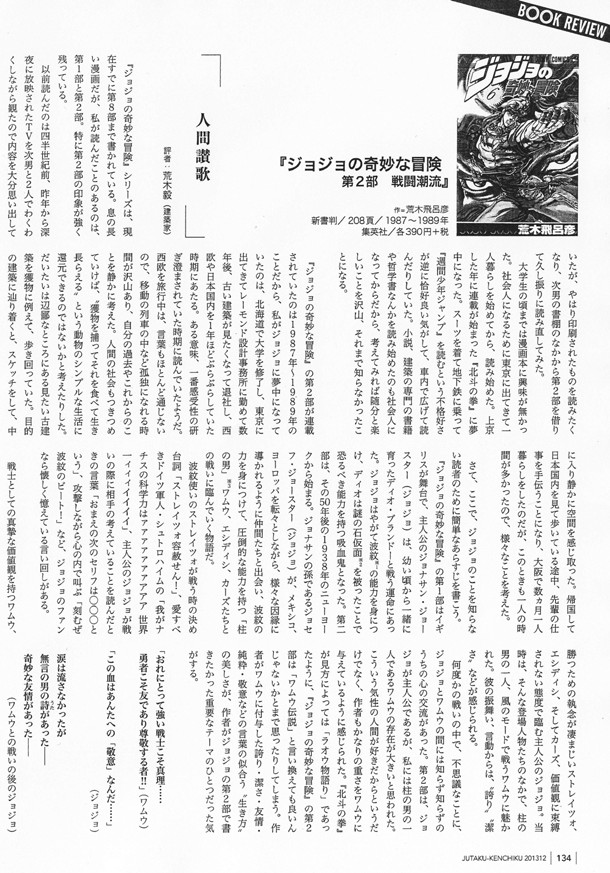 「 人間讃歌 」 ジョジョの奇妙な冒険 第2部 戦闘潮流